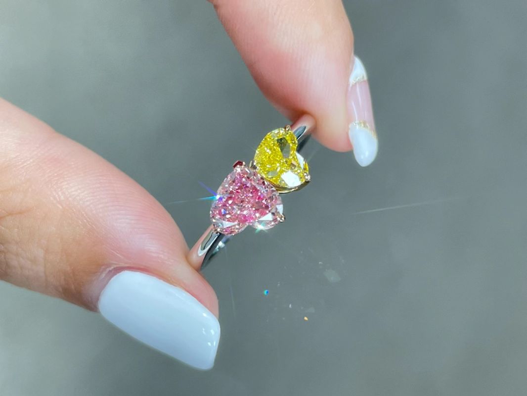 En laboratoire cultivé rose et jaune anneau de diamant synthétique bijoux haut de gamme 18k or blanc