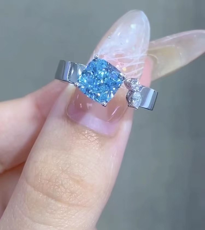 Lab Diamant bijoux bleu Couche coupée Anneaux de fiançailles Anneaux de mariage Anneaux de diamant fantaisie