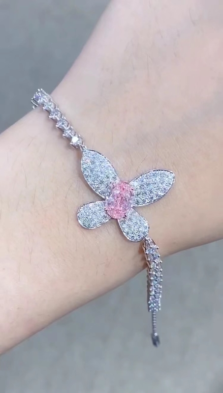 Diamants synthétiques en vrac Bracelet de diamant Papillon Produit de bijoux Production d'oreille Collier de forme ovale Bracelet de diamant rose